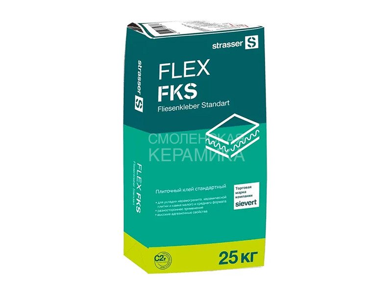 Плиточный клей стандартный strasser FLEX FKS применяется для укладки керамогранита, натурального и искусственного камня, керамической плитки и мозаики. Клей FLEX FKS используется для укладки облицовки на пол и стены, размер облицовки снаружи помещений до 45х45 см, внутри помещений до 90х90 см. Укладку облицовочного материала можно выполнять на цементные, цементно-известковые, известковые и гипсовые основания, бетонные стены, гипсоволокнистые и гипсокартонные листы.